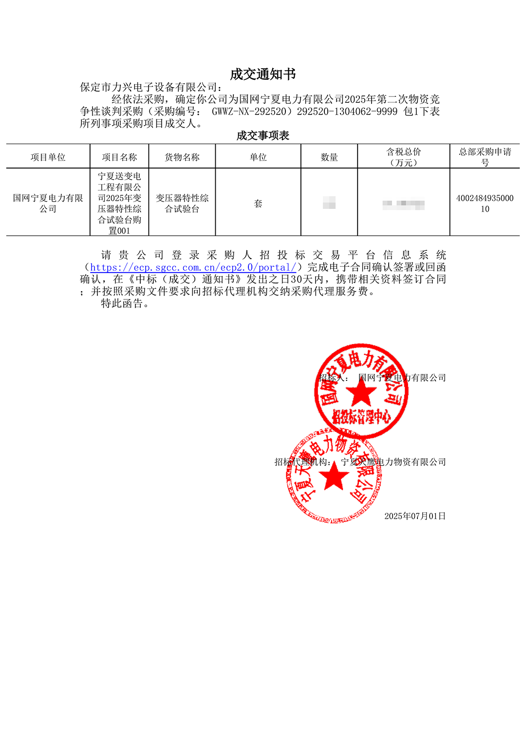乐投在线登录第二季度中标通知如下展示,我们将团结一致,再接再厉,迎接已经到来的第三季度。